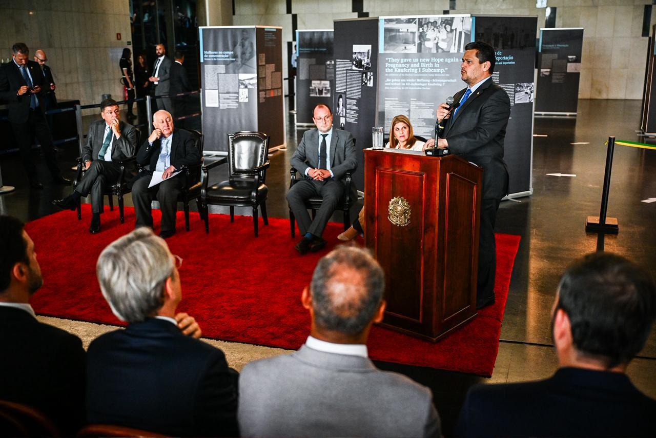 O presidente do Senado e do Congresso Nacional, Davi Alcolumbre (União-AP), participou nesta terça-feira (3) da abertura da exposição “Eles Nos Deram Novamente Esperança”, instalada no Salão Negro do Congresso Nacional. A mostra presta homenagem a sete bebês que nasceram em dezembro de 1944 no campo de concentração de Dachau, na Alemanha, e que sobreviveram ao Holocausto.