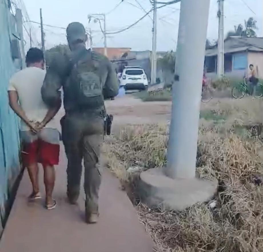 A ação ocorreu na Avenida Ivaldo Veras, na área das pontes que interligam os bairros Jardim Marco Zero e Congós, local considerado estratégico para a circulação de pessoas e veículos. O suspeito foi identificado sendo Tadeu Martins de Souza, conhecido pelo apelido de “Esquerdinha”.