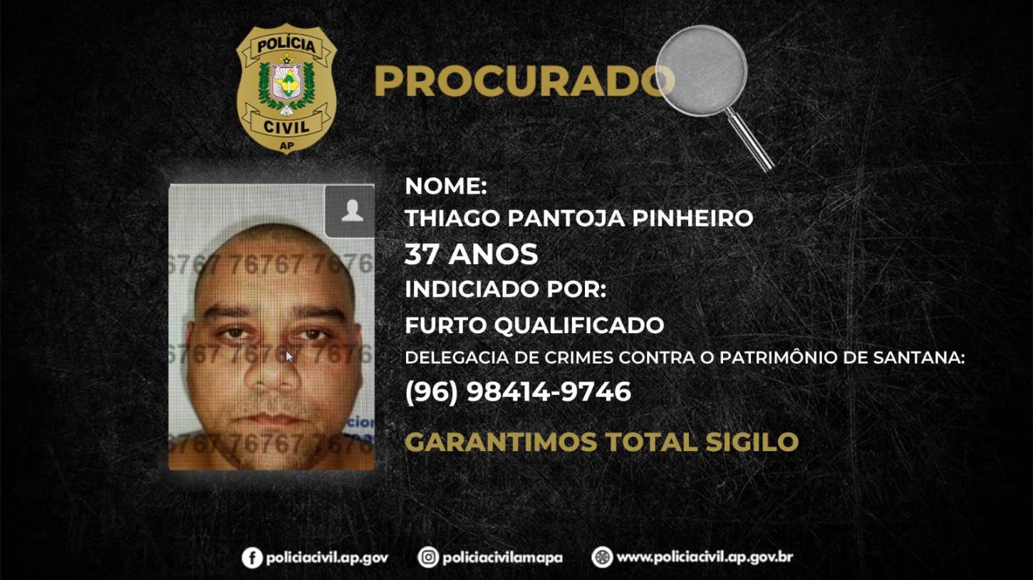 A Polícia Civil do Amapá está em busca de três homens suspeitos de envolvimento em um furto de grandes proporções ocorrido no município de Santana. De acordo com a Delegacia de Crimes Contra o Patrimônio de Santana (DCCPS), o inquérito sobre o caso foi concluído na terça-feira, 5 de agosto, e revelou a participação de Ivando Coelho Rocha, Wilson Lopes da Silva, ambos de 38 anos, e Thiago Pantoja Pinheiro, de 37 anos, no crime.